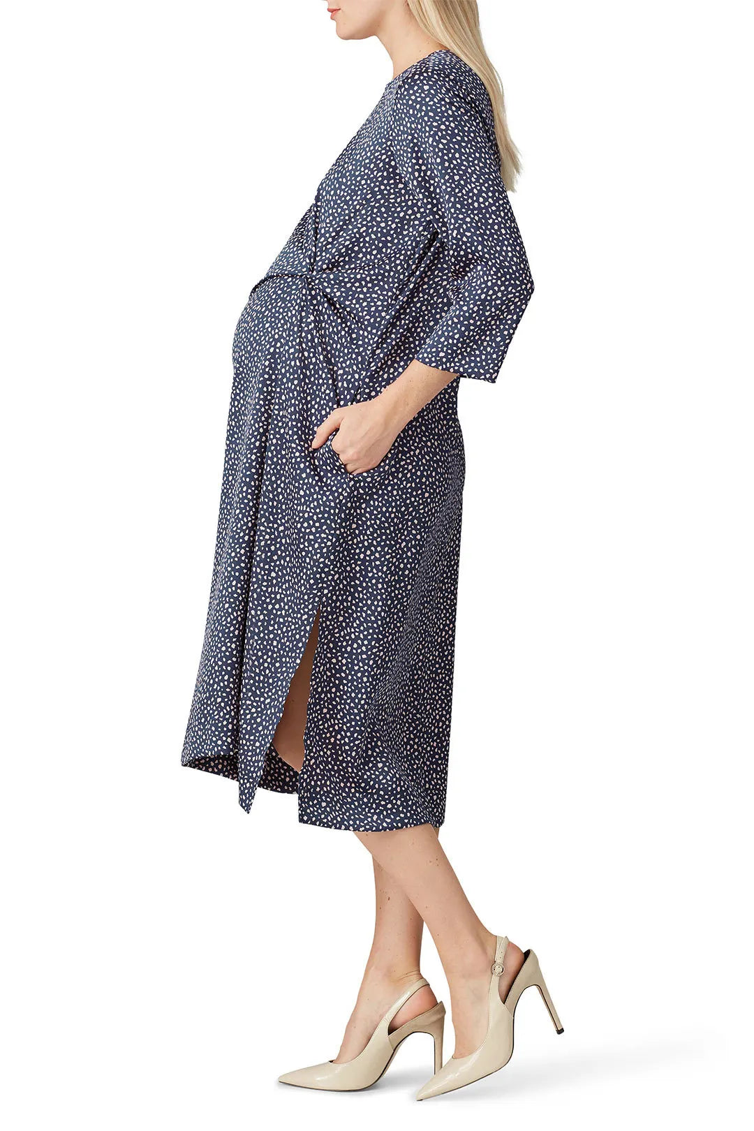Cut to flatter (hiya side slits) in a softly textured hammered satin. Fitted throughout the body and finished with a pretty jewel neckline that frames your collarbone (never mind the bump) this gem will get you through all nine months and after, too.