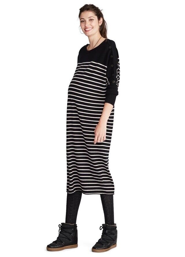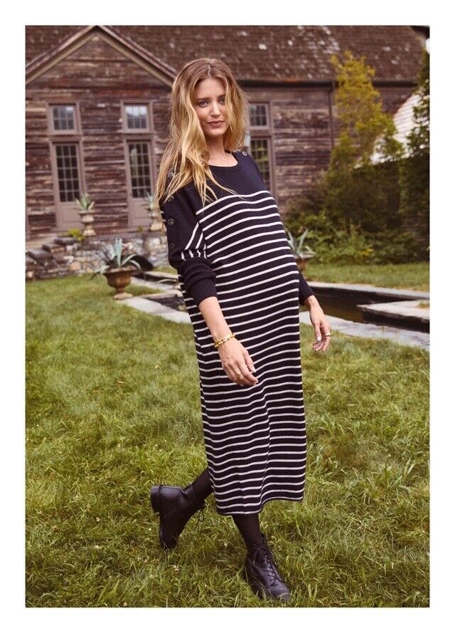 Hatch Maternity Women’s THE LOU DRESS Wool/Cashmere Black Stripe $298 NEW