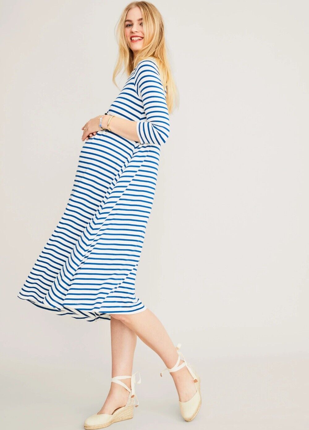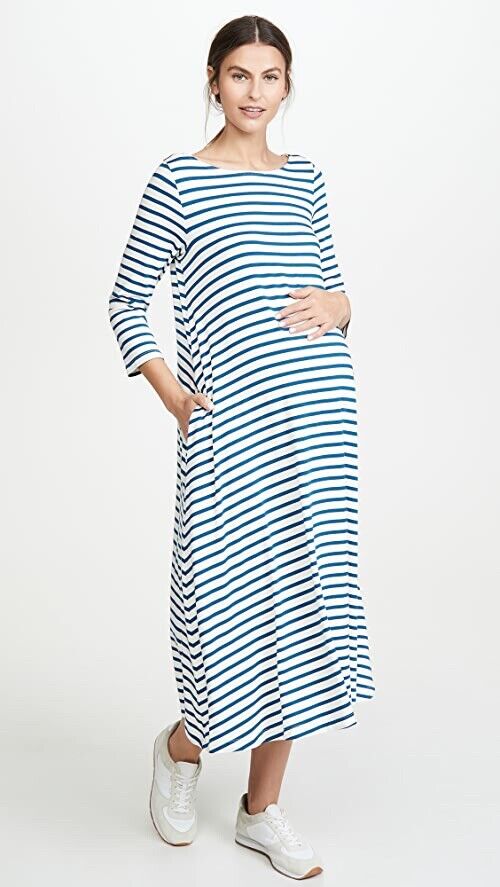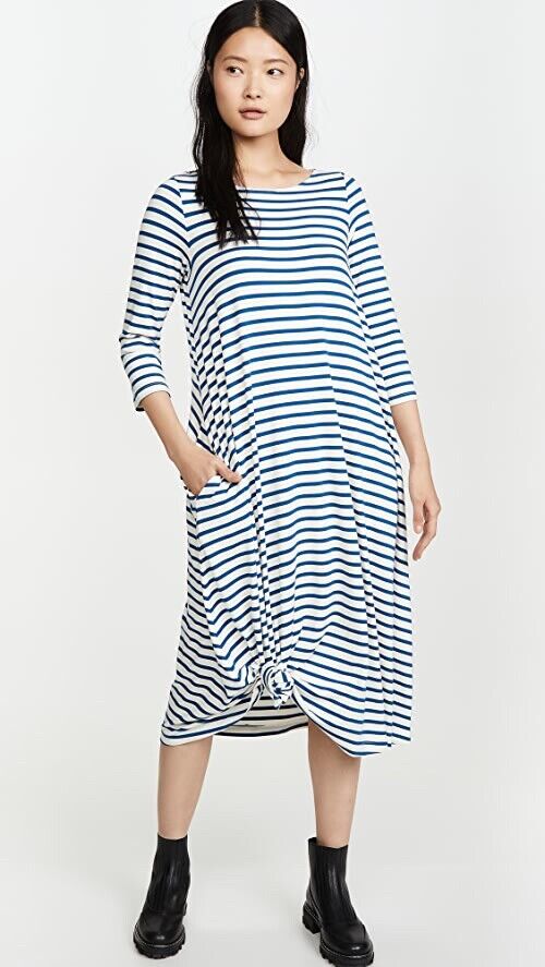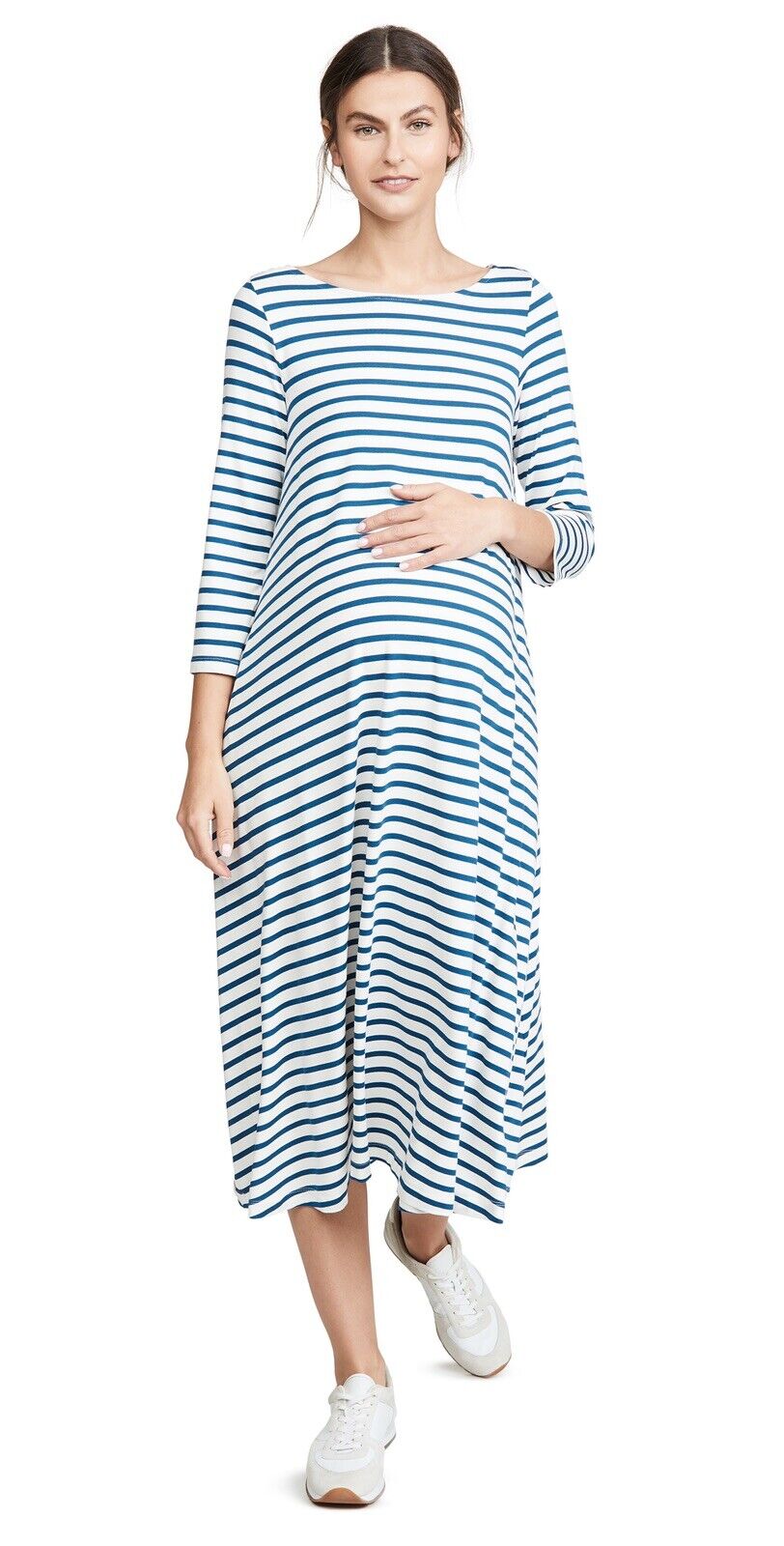 Hatch Maternity Women’s THE MARINA DRESS Ivory/Blue Stripe $178 NEW