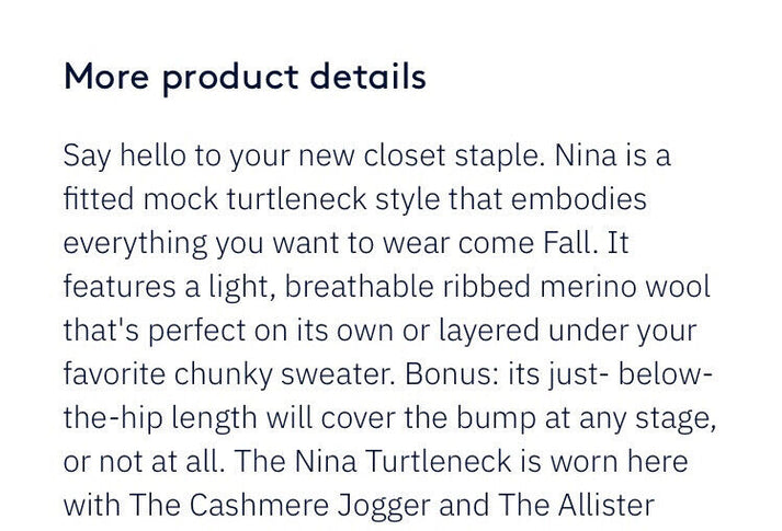 Hatch Maternity Women’s THE NINA TURTLENECK Merino Wool Beige $188 NEW